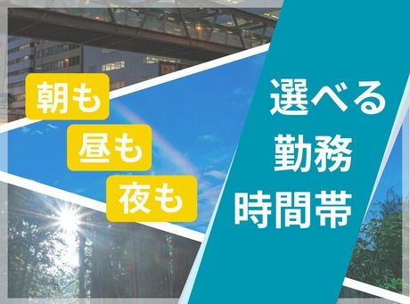 勤務時間 ・勤務曜日:月・火・水・木・金・土・日・祝 ・勤務時間: [1] 06:15~15:15 [2] 07:00~16:00 [3] 08:00~17:00 [4] 09:00~17:00 <一例> 6:15~15:15(実働8時間) 07:30~12:00(実働4.5時間) ※朝6時~昼16時のうち、4時間~8時間 ■週3日~OK(応相談) ■休憩時間:1時間休憩あります