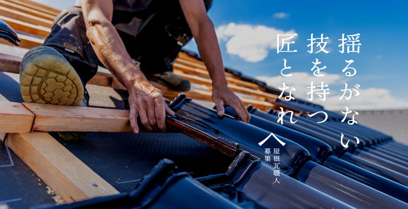 アピールポイント ◆大器晩成、上等です! ─────────────── 職人業の中でも、ひと際珍しい職種です。 日本家屋に欠かせない、屋根瓦。 伝統的な技法を習得する必要があり、 一人前になるまで5~10年かかる職業です。 同業者も少ないため、ゆくゆくは独立も可能です。 「かわらぶき技能士」という国家資格の取得には実務経験年数が必要ですが、 働きながら取得を目指せるので一石二鳥(受験費は全額補助しています)。 ここでじっくり、キャリアを重ねていきませんか? ─┘─┘─┘─┘─┘─┘─┘ 4代目となる代表と、未来の5代目(20代)、 ベテラン職人(30代)の少数精鋭。 和気あいあいとしながら、 あなたをしっかり一流へと育てます。 少しでも気になったなら、 ぜひお気軽に面接にお越しください。 ─┘─┘─┘─┘─┘─┘─┘