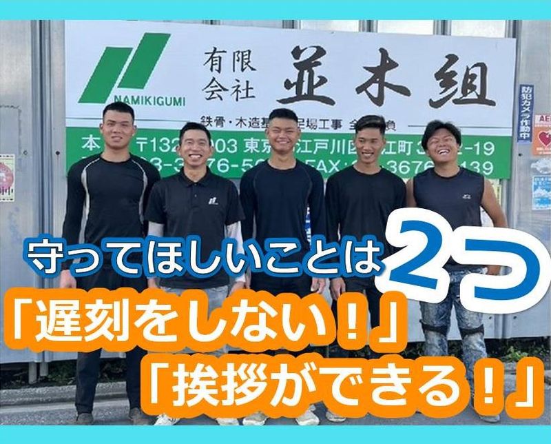 求めている人材 【必須!】 ★遅刻をしない! ★挨拶ができる! ☆準中型自動車免許 ※業務でダンプを運転する場面あり ※未経験でも安心 ◎チーム制でフォロー ◎1つずつ覚えられる分業スタイル ◎管理スタッフがしっかりサポート 高校卒業後すぐに入社した10代や 他業種から入った20~30代も活躍中!