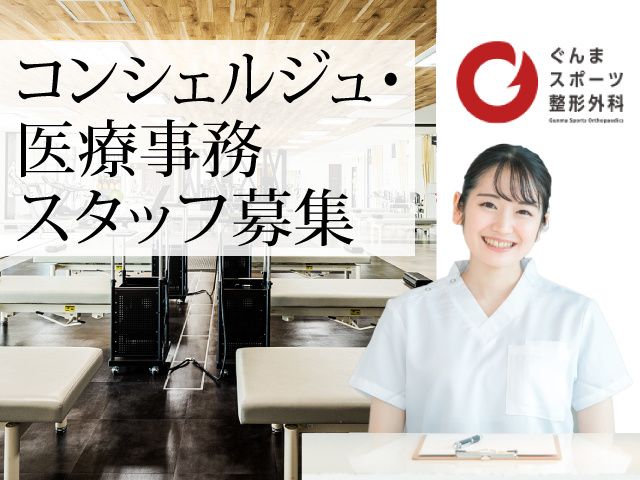 仕事内容 無資格・未経験・来春新卒や第二新卒の方もチャレンジOK 正社員、コンシェルジュ・医療事務の求人募集です。 〈ここがポイント〉 ・無資格OK ・未経験スタートOK ・完全週休2日制 ・年間休日131日 ・資格や経験が活かせる ・ゆっくり午後出勤 ・幅広い世代活躍中 ・福利厚生充実 ・来春新卒や第二新卒の方もOK 〈募集職種〉 正社員/コンシェルジュ・医療事務 〈仕事内容〉 正社員、コンシェルジュ・医療事務として、 整形外科での事務・受付業務をお任せします。 具体的には・・・ ・診察券・保険証の確認 ・会計 ・電子カルテの入力 ・レセプト業務 ・レセプトコンピューター処理 ・次回受診の予約案内 ・清掃、備品発注 等 〈未経験スタートOK〉 医療事務認定実務者などの資格をお持ちの方、 クリニック・医療機関・病院・福利施設等での 医療事務の経験をお持ちの方は、 即戦力として活躍できます。 経験の浅い方、ブランクのある方、 来春新卒や第二新卒の方からのご応募も お待ちしています。 <当院で働くメリット> 【プライベートの充実】 週休2日制(火・土・祝 他) 年間のお休みも多めです。 (2023年実績131日) お休みがしっかり取れるので プライベートも充実します。 また、午後からの勤務になりますので 朝が苦手な方、午前中の時間を 有意義に過ごしたい方にはお勧めです。 【待遇・福利厚生の充実】 全てのスタッフが安心して 長期勤務頂けるように 待遇面・福利厚生を整えています。 【クリーンな職場】 当院は常に清掃が行き届いており、 清潔で衛生環境も抜群です。 気持ちの良い職場で勤務頂けます。 【幅広く活躍中です】 現在、20代・30代・40代の 若年層、ミドル、中高年、 主婦(夫)さん、子育てママさんなど、 幅広い年代のスタッフが活躍中です。 <地域密着のクリニックとして> 開院より毎日多くの患者様が来院されますが それぞれの方が違った悩みを持ち、 不安な気持ちで当院に訪れると思います。 患者様が安心できるよう、 親切丁寧なご案内をお願いします 大きな総合病院とは違い、 地域密着型クリニックの当院では、 患者様との距離を近くおき、 コミュニケーションを大切にしています。 心機一転スタートしませんか? スタッフ一同あなたの ご応募をお待ちしています。 =・=・=・=・=・=・=・= 当院は群馬県前橋市にある スポーツ整形外科を専門とするクリニックです。 MRIやエコーによって迅速に診断を行い、 リハビリを中心とした治療で 一般患者様からアスリートの方まで 最短でのスポーツ復帰を目指しています。 =・=・=・=・=・=・=・=