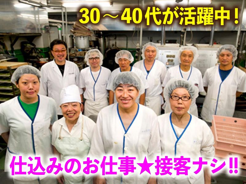 職場環境 【レア求人★和菓子の専門店で製造スタッフ募集!】甘いものが好きな方なら未経験でも大歓迎!仕事の流れは最初に丁寧にお教えしますので、誰でもスムーズにスタートできますよ!現在は、和菓子職人として活躍する30~40代男性スタッフも多数在籍!<自転車通勤もOK♪>