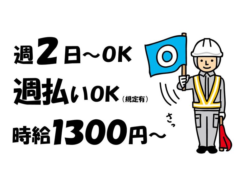 仕事内容 「そろそろ仕事を始めたい」 「自分のペースで働ける仕事を探している」 そんな方におすすめのお仕事です。 週2日から働けて、 生活スタイルに合わせてシフト相談もOK。 無理なく続けながら、 安定して収入も得られる働き方ができます。 大阪府内に現場も多く、 長く続けているスタッフもたくさんいます。 《この仕事のポイント》 ◇週2日~勤務OK 自分のペースで働けるので、 無理なく仕事を続けることができます。 ◇時給1300円+週払いOK(規定有) 働いた分の収入を 早めに受け取ることも可能です。 ◇直行直帰OK/車通勤OK 現場へはそのまま向かって、 そのまま帰宅。通勤の負担も少なめです。 ◇未経験スタート歓迎 警備の経験がなくても大丈夫。 基本から丁寧にお教えします。 ◇意外と体への負担は少なめ 立ちっぱなしではないので、 通し勤務でも無理なく働けます。 【仕事内容】 大阪府内の工事現場で、 歩行者や車が安全に通行できるように見守る 交通誘導警備のお仕事です。 《具体的には》 ・搬入口での歩行者への声掛け ・車の出入りの管理、簡単な誘導 ・駐輪場出入口での歩行者や自転車の方への案内 などをおこないます。 現場では、 「ありがとうございます」 「お疲れさまです」 と声をかけてもらうことも多く、 街の安全を支える大切な役割です。 難しい作業はありませんので、 警備の仕事が初めての方でも 安心して始められます。 【勤務地について】 大阪府内の工事現場 ◇現場へ直行直帰OK ◇車通勤OK 近隣エリアに現場が多数あるため、 安定してお仕事があります。 「自分のペースで働きたい」 そんな気持ちからのスタートで大丈夫です。 特別な経験や資格は必要ありません。 笑顔であいさつができる方なら大歓迎。 まずは気軽に応募して、 お仕事のことを聞いてみてください。 あなたの新しい働き方を、 ここから始めてみませんか?
