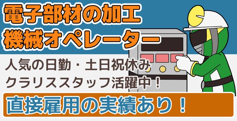 仕事の内容 【未経験OK!電子部材の検品スタッフ募集!】 \ 上場企業で安定勤務! 長く働きたい方におすすめ♪/ 鯖江市近郊にある、磁石などの加工を行っている大手企業グループ会社でのお仕事! ≪具体的な仕事内容≫ 機械に電子部材をセットし、切断・切削・研磨・洗浄などの加工を行う仕事です! ・一部、手作業で部材をセットする工程あり ・加工途中には寸法測定や目視検査を実施(マイクロメーター使用) ・切断や研磨は機械が自動で行うので、体への負担は少なめ 経験ゼロからでも腕を磨ける環境。 最初は基礎からしっかり覚えられるので、着実にスキルアップできます! 「やるからには一人前を目指す!」そんな気持ちを持った方にうってつけ。 黙々と作業に集中でき、仕上がった時の達成感は格別です。 ≪おすすめポイント≫ ・ 上場企業で安心勤務! 長く働ける環境 →頑張り次第では直接雇用の可能性あり! ・空調完備の快適な空間でお仕事 ≪勤務条件≫ ・長期派遣 ・勤務時間: 8:00~17:10 ・休日: 土・日・祝(会社カレンダーに準ずる) →長期休暇あり(年末年始・GW・夏季) ・残業: なし ≪現場の雰囲気≫ 20代~50代の男性活躍中! 製造業未経験から始めた方多数在籍! ≪福利厚生等≫ ・ 食堂スペースあり! 休憩時間も快適 ・ 制服・安全靴貸与 ・ 無料駐車場完備 ・ 受動喫煙対策あり(屋内禁煙) ★本求人にご興味をお持ちの方は、応募する!より必須項目記載の上、 お問合せ下さい。 (お電話でのお問合わせ先:0120-67-3244 ※平日9時00分~18時00分)