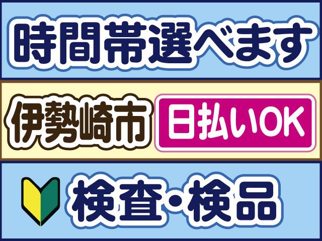 大手製造工場のコツコツ検査作業 【履歴書不要】日払いもOK 未経験OK、日勤固定or交替制で選択OK