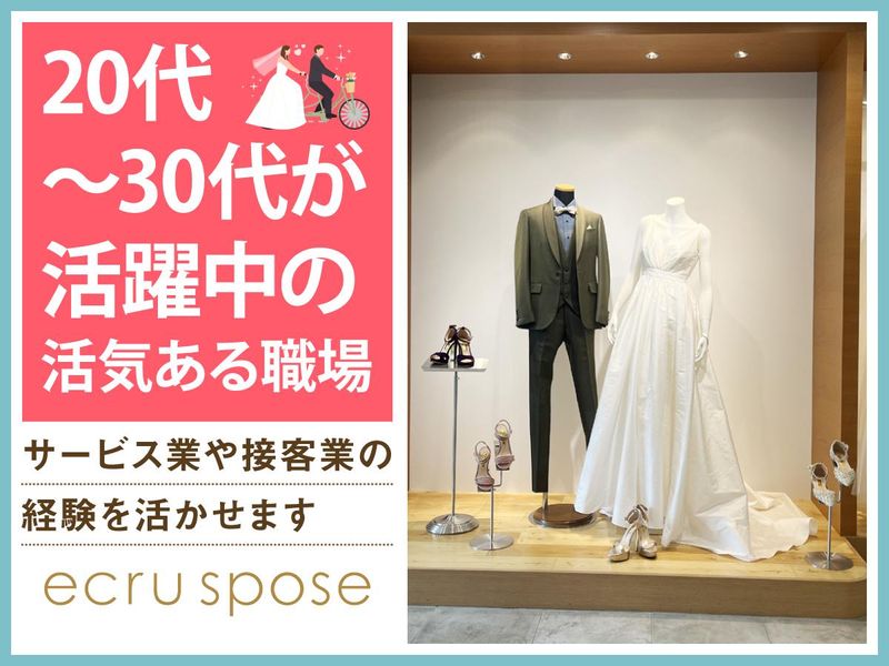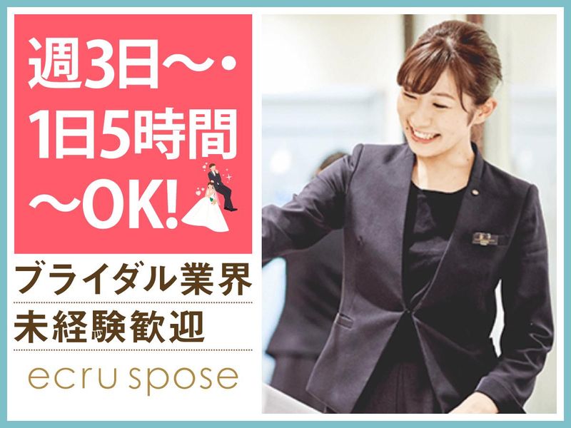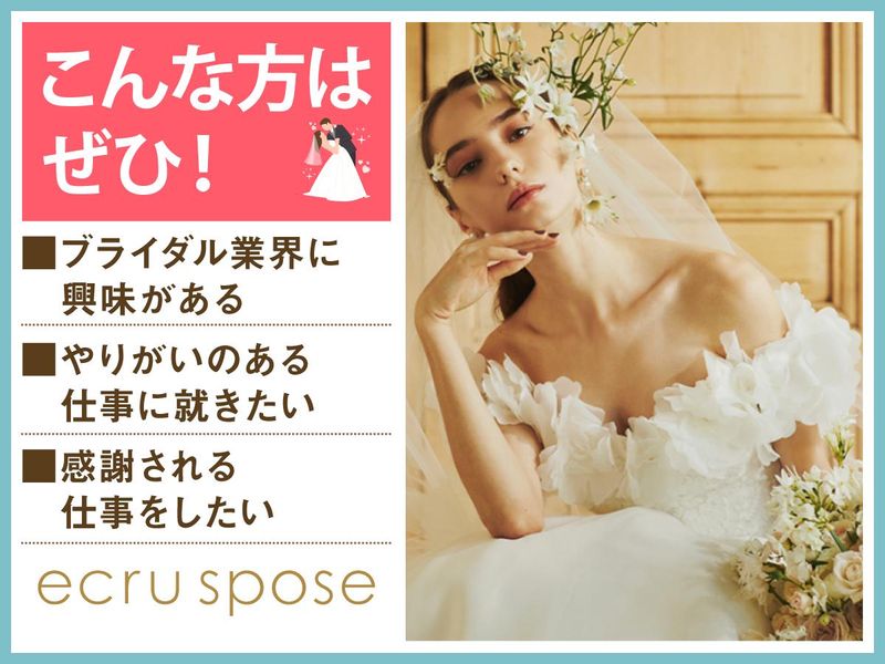 仕事内容 -。・。-。・。-。・。-。・。-。・。- \ブライダル業界未経験OK!/ アパレル経験のある方は活かせます♪ ✨週3日~勤務OK!シフト自由♪ ✨ゆくゆくは正社員も目指せる◎ ✨20代・30代の女性スタッフ活躍中♪ 素敵な思い出をつくるお手伝い♪ 丁寧な研修があるので、 未経験・ブランクのある方も安心です♪ -。・。-。・。-。・。-。・。-。・。- 善光寺駅から車で7分、 花嫁の夢を叶えるドレスショップ 「エクリュスポーゼ 長野店」 そんな当店にて ドレスショップのコーディネーターの お手伝いスタッフを募集中! 【お仕事内容】 ・結婚式・前撮り衣裳の納品準備 ・軽作業(段ボール詰め・発送準備) ・接客サポート(片付け・着せ付けなど) ・ドリンク提供 ・契約手続きサポート 新郎新婦様の特別な結婚式という1日を 思い出深いものにするための 衣装をご提案・ご提供しています。 ―――――――――――――――― 特別な一着を見つけるお仕事。 具体的な仕事内容は? ―――――――――――――――― ▶STEP.1 社員のコーディネーターがご案内した衣裳を フィッティングルームへ運び、 試着をしていただくための準備や メンテナンスなどを行います。 ▶▶STEP.2 新郎新婦様と会話をしながら、 コーディネーターと一緒に運命の1着を探すお手伝い! \まずは何から?/ フィッティングのときに 着終わったドレスを片づけたり 試着室を掃除したり お茶を出したり… まずはカンタンなことから始めてもらいます♪ 「可愛い!」「素敵!」 そんな言葉が飛び交う、 幸せいっぱいの空間でお仕事しませんか? ―――――――――――――――― ~ 働いているスタッフの声 ~ ―――――――――――――――― ◆スタッフAさん ブライダル業界に憧れていて、 最初は結婚式場スタッフの求人を見ていました。 たまたまここの求人を見たときに、 「ウェディングドレスに関われるって素敵!」 と思って入社!全く別業界での接客業の 経験のみでしたが、先輩たちが丁寧に 教えてくれたので、スグに慣れました◎