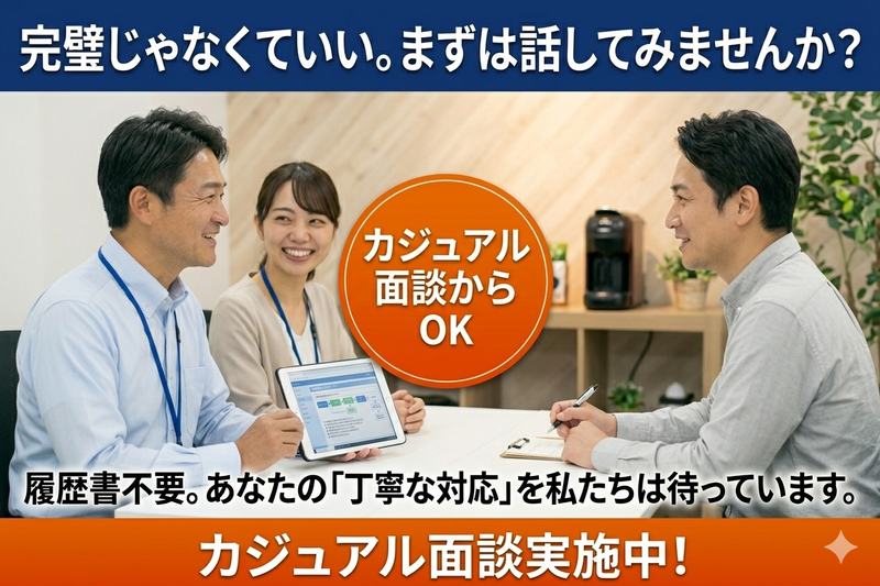 求めている人材 【必須要件】 ・基本的なPC操作ができる方 (タイピング、入力ができればOK) ・土日祝を含む週5日勤務できる方 ・シフト勤務に対応できる方 【歓迎要件】 ・コールセンター経験 ・受電対応、クレーム対応経験 ・接客、販売、サービス業経験 ・電話対応の実務経験 ・ブランクOK ※経験は必須ではありません。 【求める人物像】 ・人の話をしっかり聞ける方(傾聴力) ・落ち着いて丁寧に対応できる方 ・状況を整理して伝えられる方 ・クレーム対応に抵抗がない方 ・責任感を持って業務に取り組める方