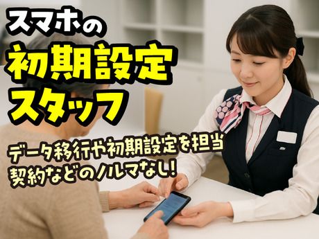 仕事内容 仕事内容詳細 【ポイント】 *≪選べる勤務日数≫週3日~OK! *≪未経験歓迎≫普段スマホをお使いであれば簡単に覚えられます♪ *≪髪型自由、ネイルもOK≫ナチュラルOK★自由度の高い環境で働けます *≪時短勤務可≫働きたい時間をご相談ください★ *≪交通費支給≫ 【仕事内容】 携帯ショップで携帯の初期設定やデータの移行作業等、 事務的な業務がメインのお仕事です。 商品の案内やプランの説明、契約業務はありません! コミュニケーションが得意な方はスマホ教室の先生をメインで就業する事も可能です! 自分の「得意」を活かして、いろんなお仕事にチャレンジできる企業です★ ■初期設定のお仕事 お客様が購入されたスマホを、お客様が直ぐに使用できる状態に設定します 普段スマホをお使いの方でしたら、直ぐに覚えられる作業です ■スマホ教室のお仕事 スマホ操作が苦手な方や、スマホデビューされた方、ご高齢の方に使い方をレクチャーしてあげるスマホ教室の先生。 電源の入れ方、電話のかけ方、検索の仕方、など、基本操作になります。 アピールポイント 【月収例】 ■週3日×5時間勤務の場合 時給1400円×5h×12日=84,000円 ※交通費全額支給 ■週5日×フルタイム勤務の場合 時給1400円×8h×21日=235,200円 ※交通費全額支給 福利厚生 ・社会保険完備 ・交通費支給 ・有給休暇あり ・キャリアアップ制度あり ・残業代あり ・駐車場完備 ・車通勤OK!! - 【スキルアップ】 eラーニングで効率よくスキルアップを図りませんか? 福利厚生の一環として、ぜひご活用ください! - 【国家資格者による無料キャリア相談サービス】 ◆当社には、国家資格でもある 『キャリアコンサルタント』が在籍しております。 転職、職場での悩み、子育てとの両立など、働く上での悩みを、 キャリアコンサルタントが相談者の立場に寄り添いながら 問題解決の支援を行っております。 - 【就業後のサポート専任部隊がおります!】 当社には、キャリアコンサルタント以外にも 就業後のサポートエキスパート部隊がいます 仕事の不安、悩みはもちろん、プライベートな相談も可能です。 安心して働ける様にサポートいたしますので、 いつでも気軽にお話してくださいね。 - 《採用までの流れ》 (1)希望のお仕事にエントリー(WEBからご応募ください) (2)当社よりメールまたはお電話でご連絡いたします (ご応募いただいたお仕事の確認、登録会の日程について) (3)登録(30分~1時間程度) 担当者より、お仕事内容とご就業までの流れについてご説明をさせていただきます。 ※オンライン登録または来社登録にて承っております。 人柄重視の採用です。まずはお気軽にご応募ください。 登録は世間話をするような雰囲気なので堅苦しさはまったくありません! ※スマイル、サンビレッジ、アイ・ファインはグループ会社です 上記3社は、人材サービスの企業グループを形成しています。 求職者様により適切なお仕事をご紹介するために、お預かりした個人情報を共同利用させていただきます。 共同利用の幹事社は、以下の通りです。 株式会社アイ・ファイン 代表取締役 伊勢学