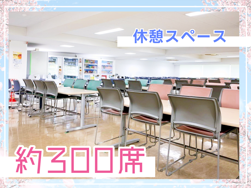 職場環境 服装・髪型・ネイル・ピアスOK コンビニ自販機完備 休憩室完備(約300席) 館内完全禁煙 喫煙所:喫煙所あり(屋外)