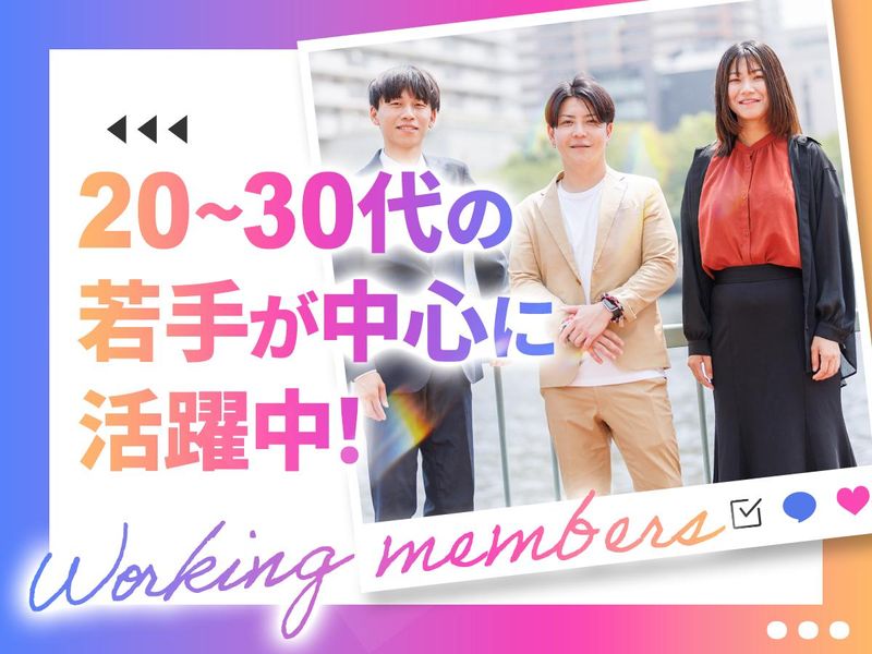 職場環境 \✨平均年齢27歳◎若手活躍中✨/ 異業種からの転職者や中途入社の方も多数! 社員の意見が通りやすい風土があり、 私たちの声から生まれた福利厚生・制度も充実◎ 今までの経験・スキルを活かして さらなるキャリアアップを目指せる環境です。