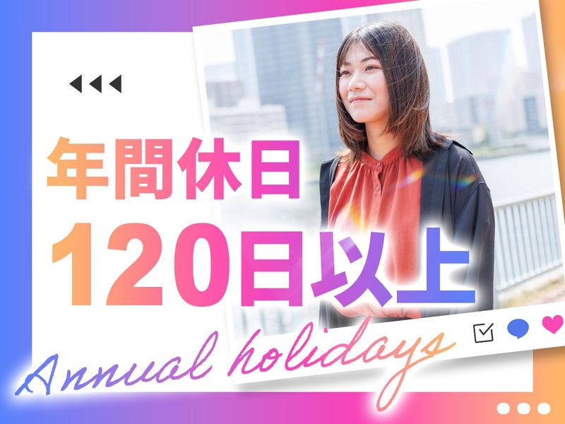 休日休暇 【年間休日120日以上】 ◆完全週休2日制(曜日は要相談) ◆夏季休暇 ◆年末年始休暇 ◆有給休暇(取得率90%以上!) ◆慶弔休暇 ◆産前産後休暇(取得・復帰実績あり) ◆育児休暇(取得・復帰実績あり) └産後パパ育休制度あり ◆特別休暇 \✨働きやすさバツグン✨/ 「次の連休で旅行に行きたい」 「家庭でのイベントを優先したい」 など、スケジュール調整もしやすい◎ ライフステージの変化にも柔軟に対応しており、 働きやすさはお墨付き! 定着率96.9%を誇ります。