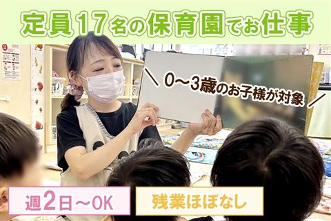 定員17名の保育園でお仕事★0~3歳のお子様が対象★早朝・延長保育の時間を担当、どちらかのみでも可能!週2日以上で勤務OK♪【木津川市・保育園・保育士・パート】