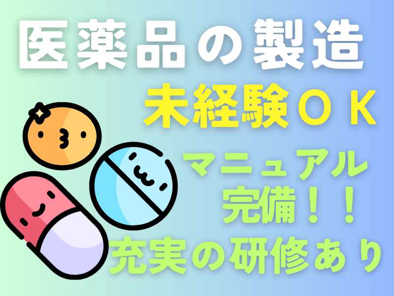 キレイな職場で医薬品の製造!マニュアル完備で先輩がしっかりサポートしてくれるので未経験でも安心して働けます◎