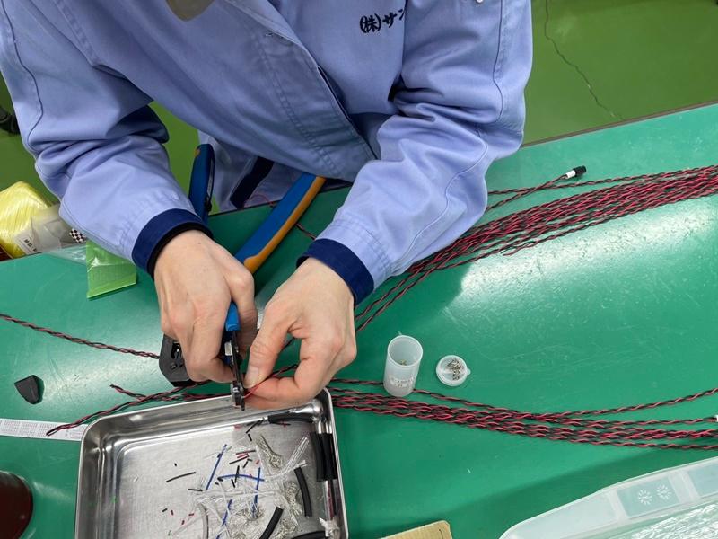 仕事内容: *未経験からスタートできるお仕事! *職場の雰囲気良好♪コミュニケーションも取りやすい◎ 現在、男性21名・女性18名のスタッフが活躍中! 複数のケーブルや電線を束ねて保護する 「ハーネス加工」という以下の作業をお任せしま す。※ケーブルの先端にコネクタが付いた製品を つくるイメージです!写真で完成品ご確認ください♪ ・ケーブルを必要な長さに切断します。 ・ケーブルにコネクタや端子を取り付けます。 ・導通検査、外観検査などを行い、品質を確認します。 カンタンな作業なので、 未経験でも安心して始められます! ほとんどのスタッフが未経験からスタートし、 スムーズに成長しています◎ ☆働きやすい環境☆ ・女性や主婦スタッフも多数活躍中! 若手から主婦さんまで幅広い年代の方が活躍しています。 ・ライン作業ではなく、 一つひとつ丁寧に作業を行うスタイルです。 ☆入社後のサポート☆ 入社後は先輩社員がマンツーマンで丁寧に指導し ます。不安があれば気軽に質問できる環境です♪