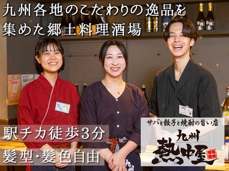 仕事内容 【キッチンスタッフのお仕事】 ・盛付 ・仕込み ・調理補助 など。 どの店舗も素材にこだわっているので、 調理方法や素材に関する知識が増えますよ!! ただ料理を提供するだけではなく、 意外な工夫やサプライズなどにより、 沢山のお客様を笑顔にしていきませんか!? 【未経験でも安心のワケとは?】 先輩達の多くが未経験スタート! 初めてで不安...な気持ちがよ~くわかります。 盛付のコツ・野菜の切り方など、 簡単なことから少しずつ 丁寧に指導していくのはもちろん、 先輩スタッフが近くでフォローします! 【一緒に働くスタッフは?】 系列店も含め、10代,20代,30代,40代の 学生、フリーター、主夫・主婦パート活躍中! 初めてのアルバイトはもちろん レストラン,カフェ,喫茶店,居酒屋などの 飲食店経験者、学校給食,社員食堂などでの 調理・調理補助経験者歓迎! 【嬉しいメリット多数あり!】 \お給料+αの魅力をCHECK!/ *従業員割引30%OFF *友達紹介制度2万円 *週払いOK *交通費支給 *食事補助・まかないあり *正社員登用あり *髪型・髪色自由 など 【九州熱中屋】 「もつ鍋」「鉄鍋餃子」「薩摩揚げ」など 皆に愛される九州郷土料理をご用意。 九州各地の美味しい郷土料理を集めた 活気ある大衆酒場です。