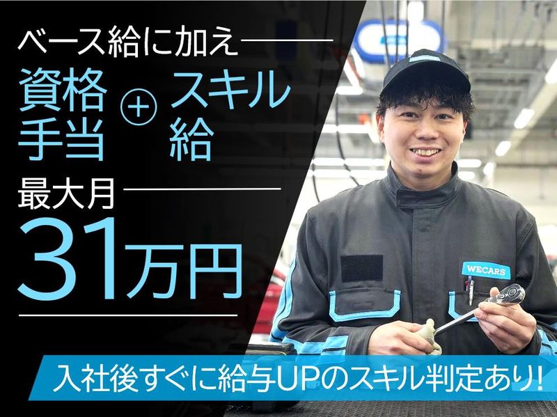 仕事内容 □■この求人のPOINT■□ 伊藤忠グループ/全国約250店舗展開 ◎国産~輸入車まで幅広い車種を担当 ◎車両状態が多様で、 判断力・応用力が身につく ◎スキル・資格に応じて昇給・昇格可能 ◎入社1~2ヶ月後のスキル判定で給与決定 ◎繁閑差のある働き方 ◎国家資格(3級・2級)取得支援あり □■WECARSについて■□ 2024年、伊藤忠グループのもと発足。 全国約250店舗を展開する整備・販売企業。 安定基盤のもと、評価制度を明確化し 整備士が長く活躍できる環境づくりを 進めています。 □■業務内容■□ 国産車・輸入車の点検・車検整備 オイル・タイヤ交換などの軽整備 故障診断・重整備にも段階的に挑戦可 車種や状態が多様なため、 スピード重視のルーティン作業だけでなく 判断や応用が求められる環境です。 □■働き方■□ 中古車業界には、繁忙期と落ち着く時期が あります。 時間に余裕がある時期は、 eラーニング受講や整備資格取得準備など、 スキル向上の時間を確保できます。 講習費用は会社が補助し、 受講時間は勤務時間として扱います。 多様なディーラー出身者が在籍しているため 日々の業務を通じて幅広い知識や技術を 吸収できる環境です。 □■評価制度■□ 技術・接客・コンプライアンス・チーム力の 4軸評価。 資格取得や対応業務の幅に応じて昇給。 「何をできれば上がるのか」が明確です。 例えば、自動車検査員資格を取得した場合、 月給が10万円アップします。※規定あり □■設備環境■□ ◎四輪アライメント測定器 ◎リフト平均8~12基 ◎1人1レーン制 ◎明るく開放的な整備スペース 効率と安全性を両立した設備環境で、 整備に集中できます。 □■将来のキャリア■□ 一般整備士 → チーフ → 工場長 → ブロック長/本社部門 全国展開企業だからこそ、 ポストの選択肢があります。