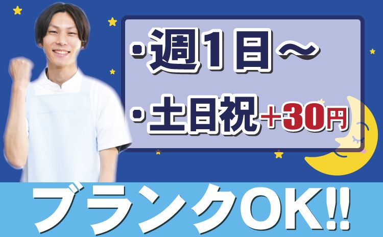 仕事内容 《週1日~OK!しっかり稼げる夜勤専従》 東久留米市八幡町にある 看護小規模多機能型居宅介護 「花織ひがしくるめ」で 夜勤介護職員を募集! 【オススメポイント】 ・介護経験があれば無資格もOK ・宿泊定員は9名のみ ・Wワーク、扶養内勤務も可 ・週1日~OK!定年制なし ・40代・50代の方活躍中 ・中高年、シニア世代も活躍中 【仕事内容】 ・夕食・朝食の準備 ・身体サポート ・夜間の見守り などの夜勤介護業務をお願いします。 大人数の介護施設で働かれていた 介護スタッフにとっては負担も少なく、 個人に寄り添った介護ができるため、 働きやすい環境だと思います。 【無資格の方も介護職の経験があればOK】 介護職の経験あれば働き方に関しては不問です。 ブランクがある方も仕事に慣れるまでは 先輩の社員やパート、アルバイト介護職員が 丁寧に教えるので介護スタッフとしての 経験が浅かったり、ブランクがある方も 安心してご応募ください。 【こんな経験がある方は即戦力で働けます!】 ・グループホームの夜勤専従パート介護職員 ・老人ホームのアルバイト介護スタッフ ・正社員の介護職員 ・介護福祉士や実務者研修、初任者研修等の 介護職に関する資格をお持ちの方 【応募を検討している皆様へ】 応募のご検討ありがとうございます。 募集内容をご覧になって ご興味をもっていただけましたら お気軽にお問合せください。 私たちも求職者様が安心して 一緒に働いていただけることを 楽しみにしています。