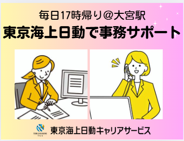 仕事の内容 \安定度◎大手保険会社/ ◆毎日17時帰り×月収約23万~ ◆研修&OJTあり!保険はじめてから損保スキル習得 【基本情報】 雇用形態:派遣社員 雇用期間:長期(3カ月以上) └1月~開始日相談可能 就業時間:9:15~17:00(休憩60分) 【必須条件】 ◆パソコン:基本操作(入力~修正) ※保険はじめての方、ブランクある方、ご経験少ない方もまずはお気軽にお問合せだけでもお待ちしております。 【お仕事内容】 ・計上 └契約書類チェック、不備確認・訂正(全種目) ・代理店計上後のチェック ・照会応答 ・各種証明書作成 └付保証明書、控除証明書など ◆最初に3日間の導入研修あり!スムーズな職場デビューを応援 →保険の基礎知識やシステム操作確認してからスタート!専任の講師が対面でしっかり教えてくださいます! 【環境面等】 東京海上日動の営業支店 @大宮駅から徒歩7分 └ビル内には飲食店やコンビニもあり☄ ・20代・30代・40代・50代の多い職場 └男女比1:3 └活気のある雰囲気/派遣スタッフ活躍中 └わからないことは質問、確認をしながらオシゴトできる環境です ・ランチタイムは休憩スペース利用OK └お弁当持参OKです ・オフィスカジュアル内で服装自由 【福利厚生等】 ・社会保険完備 ・ベネフィット・ステーション ・定期健康診断あり ・禁煙オフィス!煙苦手な方も安心 ・平日のみOK!土日祝休み ・年間休日120日以上&お休み相談可 └有給休暇 ○●ご応募検討中の方へ●○ ・保険はじめてから損保スキル習得○ ・地元で長く働きたい方にオススメです!少しでも気になった方は、ぜひお気軽にご応募ください♪ ○●嬉しいPOINTたくさん!●○ 履歴書不要!開始日相談OK!/長期×フルタイム/保険未経験OK!研修あり安心スタート/主婦・主夫活躍中の活気ある職場/残業なし!毎日17時帰り