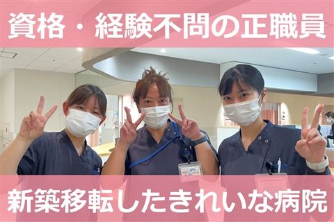 残業少なめ♪1日の実働7.5時間◆定年65歳♪駅徒歩10分◎車通勤もOK!新築移転したきれいな病院【印旛郡、病院、京成酒々井駅、看護補助、正職員】