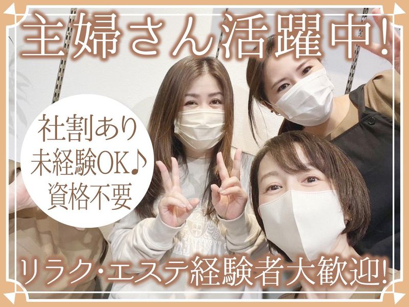 職場環境 ◎無理のない働き方ができます! お客様は女性が多く、様々な方にご利用いただいています。 男性のお客様がいらっしゃる際はオーナーも一緒に入ることも可能です◎ 現在は主婦パートさんが多数活躍中です✨ 長く働いていただける方のご応募お待ちしています(^^)/