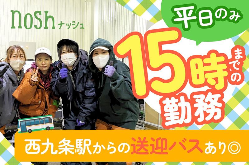 【保険制度】 雇用保険、労災保険、健康保険、厚生年金 待遇・福利厚生 【福利厚生】 ――――――――――――――― ◆ 手当&支払い制度 ――――――――――――――― ● 皆勤手当あり(最大15,000円) ● 時間外手当あり(別途支給) ● 日払い・週払いOK(規定あり) → 急な出費にも安心です◎ ――――――――――――――― ◆ 通勤しやすい環境♪ ――――――――――――――― ● 西九条駅から送迎バスあり ● 交通費支給(1日上限500円) ● バイク・自転車通勤OK ● 無料駐車場も完備しています! ――――――――――――――― ◆ 自由なスタイルでOK ――――――――――――――― ● 制服貸与(通勤は私服でOK) ● 髪型・髪色・ヒゲ自由 → 自分らしく働けます◎ ――――――――――――――― ◆ 働きやすさの工夫も充実 ――――――――――――――― ● 社会保険完備(加入条件あり) ● 有給休暇あり(簡単申請制) ――――――――――――――― ◆ 社割&イベントも♪ ――――――――――――――― ● noshのお弁当を社割で購入OK! ● 社員イベントあり(自由参加) → BBQや餅つき大会など開催♪ → 参加費はすべて会社が負担◎