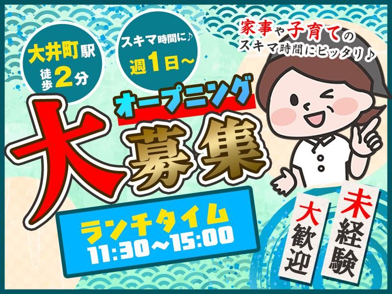 仕事内容 >>5月1日『大井町店』堂々OPEN!!<< ⭐魚が主役の「魚えもん」3号店‼⭐ 「接客は初めて」「久しぶりの社会復帰」 という方も、 オープニング募集だから安心のスタート! ⭐仕事内容⭐■□■□■□■□■□■□■ 初めは簡単な接客、挨拶やお見送りなどからスタート! お昼は定食や丼ぶりがメイン。 難しいお酒の知識や、夜の居酒屋特有の テンションは不要です! ■□■□■□■□■□■□■□■□■□■□ 【お仕事の流れ】 ✅とりあえず元気に挨拶! ✅お客さんをご案内〜! ✅ドリンク・料理の提供 ✅ニッコリ笑顔でお会計〜! ✅食器片付けてフィニッシュ! ╭━━━━━━━━━━━━╮ ⭐ 駅チカ!大井町駅から 徒歩2分の好立地◎ ╰━━v━━━━━━━━━╯ ランチタイムのお客様は、近隣で働くサラリーマンの方がメインです。 「お昼休みの限られた時間」で来店される方が多いため、 長居や複雑な注文、酔ったお客様の対応などはほとんどありません! 「久しぶりの仕事復帰でドキドキする…」というブランクがある方も、 落ち着いて一つひとつの業務に慣れていける環境です。 ╭━━━━━━━━━━━━╮ ⭐あなたの「人生経験」が、 お店の力になります! ╰━━v━━━━━━━━━╯ 「居酒屋のバイト」というとガヤガヤした イメージがあるかもですがお昼の顔は別。 丁寧な言葉遣いや、ちょっとした気配り、 家事の延長でできるテキパキとした動き… そんな、あなたがこれまでに培ってきた 「当たり前」のスキルが、 新店舗を支える大きな武器になります。 オープニングスタッフとして、 「後輩スタッフを優しく見守る、頼れる存在」 として活躍してみませんか? ✨主婦(夫)さんにもピッタリ! 「子供が学校に行っている10:00〜14:00だけ」 「夕飯の支度までに帰りたい」 そんな働き方を全力で応援します。 ✨高校生・学生さんにもピッタリ! 「授業が早く終わる日に」 「学校帰りに短時間で」 バイトデビューも丁寧にお教えします! *** 嬉しいポイント! *** ❗❗完全人柄重視!ワイワイ楽しく働けます! ❗❗ネイル・ピアス・髪色自由!自分らしく働ける! ❗❗新店続々OPEN!今ノリに乗っている会社です!