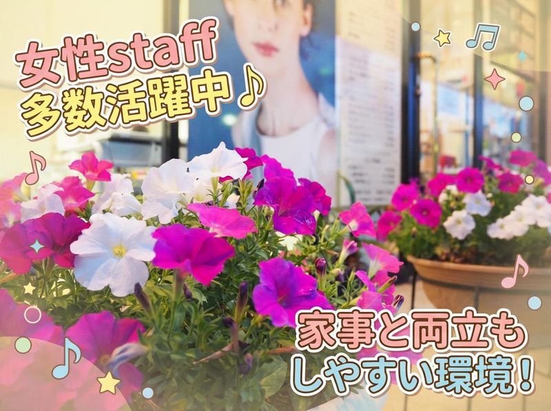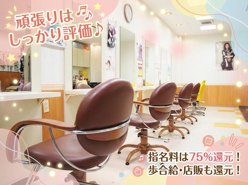 仕事内容 \ スキルも収入も、しっかり伸ばせる環境 / ✨週3日~、月曜はお休み! ✨残業なしでプライベートも充実! ✨各種手当で高収入も目指せる! 無理のない働き方の中で、 成果がしっかり収入に反映される 仕組みが整っています! <お任せするお仕事内容> パーマ・カラー・カットなど、 お客様のご希望に合わせた 施術をお任せします。 「経験を活かしてもっと稼ぎたい」 「成長が実感できる環境で働きたい」 という方は、ぜひ一度面接へお越しください♪ \プライベートも大切にできる環境/ 毎週月曜は定休日。 さらに残業はなく、営業は19時まで。 季節によっては明るいうちに帰宅できる日もあります。 仕事が終わったら、そのまま自分の時間へ。 閉店後にミーティングなどで 強制的に居残りをお願いする事は 一切ありません! また、夏季・冬季の長期休暇もしっかり取得可能。 旅行や家族との時間も大切にできます。 「長く美容師を続けてほしい」 そんな想いから、オンとオフのメリハリを大切にしています。 \頑張りが収入につながる仕組みがあります/ 歩合給35%、店販10%、指名料は75%バック。 日々の成果がそのまま収入に反映される仕組みを整えています。 シャンプーやトリートメントの店販も動きやすく、 地域からの口コミ来店も多いため、 集客面でも安心できる環境です。 残業はなく、働き方も柔軟。 プライベートを大切にしながら、 収入もスキルも伸ばしていけるサロンです♪