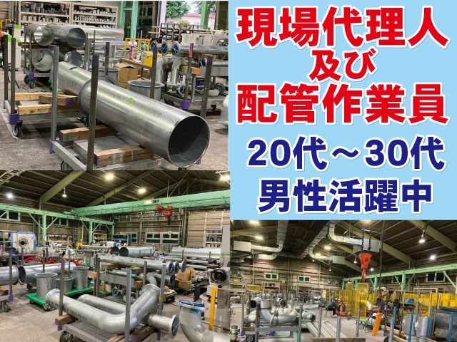 日曜休み/経験・知識・技能等不問 現場代理人及び配管作業員/20代~30代の男性活躍中 休憩120分