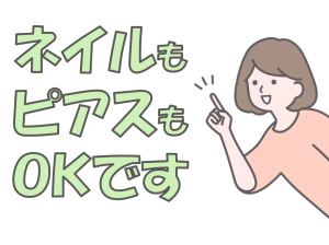 【保険制度】 雇用保険、労災保険、健康保険、厚生年金 待遇・福利厚生 ◇社会保険完備 ◇交通費支給 ◇駐車場完備 ◇車通勤OK ◇即日勤務OK ◇健康診断実施 ◇ストレスチェック ◇産休・育休取得実績あり ◇キャリアアップ制度あり ◇有給休暇取得制度あり ◇スタッフ紹介特典 ◇給料前払いOK ◇長期休暇あり ◇髪型・髪色自由 ◇服装自由 ◇ネイルOK ◇ピアスOK ◇ブランクOK ◇短時間勤務 ◇ロッカーあり ◇休憩室あり ◇勤務時間相談可 ◇U・Iターン歓迎 ◇事前の職場見学可 ◇試用期間なし ◇転勤なし ◇受動喫煙対策あり 原則屋内禁煙(喫煙所有) ※規定あり