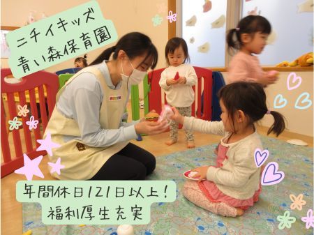 【入社お祝い金 最大10万円】お祝い金青森市内の企業主導型保育園(0~2歳児、定員18名)です。子どもたちの笑顔あふれる保育園で一緒に働いてみませんか。
