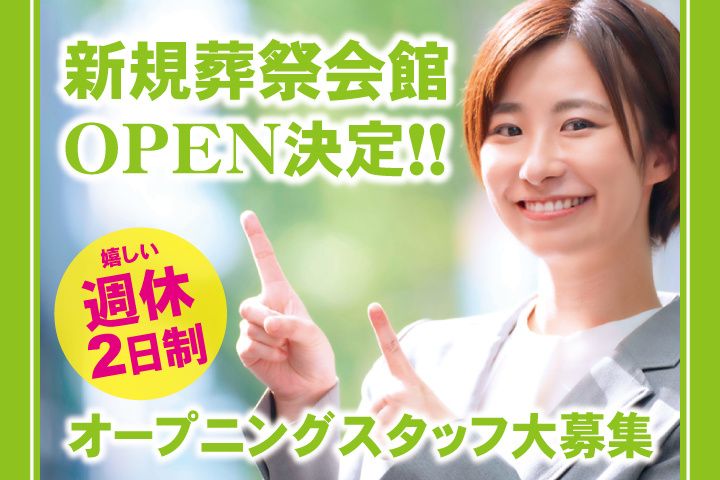 採用拡大月間!さがみ典礼銚子ホールで働こう! 週休2日制!未経験OKの正社員オープニング