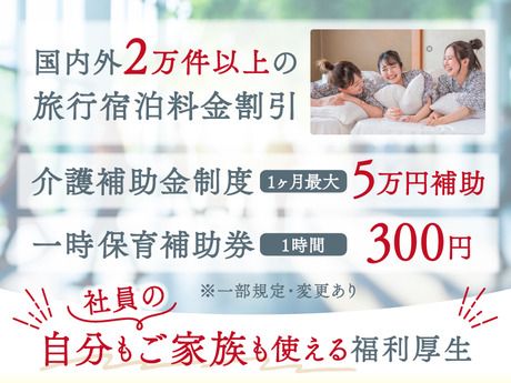 職場環境 【従業員構成】 幅広い年齢層の男性・女性が活躍中です! 【お得な割引制度が充実!】 ・国内外2万件以上の旅行宿泊料金割引 ・航空券やレンタカー料金最大40%割引 ・エステやフェイシャルケア66%割引など ・フィットネス施設利用券 ・レストランやホテルブッフェ、居酒屋などのカジュアルグルメの割引 ・引っ越し料金最大30%割引 ・お子様の学習塾などのスクール入学金無料 ・ランドセル購入費用25%~35%補助や入園・入学祝い制度あり ・一時保育補助券(300円/1時間)やベビー用品レンタル10%off ・介護補助金制度(最大5万円補助/1か月)や自助具や介助用品が10%off ※一部規定・変更有 【資格取得制度】 2種免許取得費用会社負担/要2年以上勤務 その他資格:取得費用負担/会社規定あり ※東京シティガイド検定、運行管理者資格など 【その他】 健康診断年2回 レディース健診補助(当社規定有) 【職場の雰囲気】 アットホーム 初心者活躍中 力仕事が少ない 自分の都合に合わせやすい 知識、経験不要