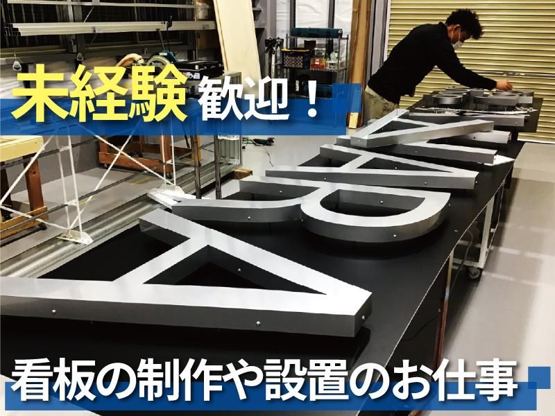 求めている人材 ✨手に職をつけたい方 看板の製作・施工を通して、未経験からでも しっかり技術を習得できます! 資格取得支援もあるので、 将来まで役立つスキルが身につきます! ______________ ✨ものづくりが好きな方 デザインから施工まで幅広く関われるので、 自分の手で形にする楽しさを実感できます。 工夫やアイデアを活かせる仕事です! ______________ ✨体を動かす仕事にやりがいを感じる方 現場での施工や設置作業など、 体を使った仕事が多いので、 働きながら健康もキープできます。 毎日達成感を味わえます。 ______________ ✨家族やプライベートの時間を大切にしたい方 子どもや家族との時間を しっかり確保したい方、必見! 当社は年間休日125日で土日祝休みだから、 家族サービスや趣味の時間もしっかり取れます。 仕事もプライベートも楽しみたい方にピッタリです♪ ______________ ●資格について ・要普通自動車免許 ・資格免許優遇(電気工事、溶接、車両系免許など) 【優遇】 ・看板や建築関連での経験者優遇! ・現場経験優遇(顧客対応などされてた方 大歓迎) 未経験の方が活躍中の職場です。 前職がドライバーや営業職だった方もいますよ! ジョブローテーションもできるので 将来的に営業に関わることもできますよ!