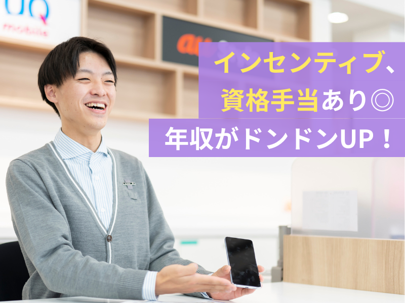 仕事内容 ⭐業界未経験者が8割以上!未経験歓迎  ̄ ̄Ⅴ ̄ ̄ ̄ ̄ ̄ ̄ ̄ ̄ ̄ ̄ ̄ ̄ ̄ ̄ ̄ ̄ ✨携帯販売の経験不問 ✨日本語での対応がスムーズにできる方 ✨年間休日130日 ✨個人の目標無し◎ ✨第二新卒歓迎 携帯販売店にて、来店されたお客様の 受付・接客・商品のご案内 などをお任せします。 【 具体的な仕事内容 】 ・お客様の受付、ご案内 ・料金、機種のご説明、変更手続き ・新規契約、機種変更、故障対応などの受付 ・他サービスのご提案(必要に応じて) ・店内の整備など “売り込む”というよりも、 “来店いただいたお客様のご相談に応える” ことを大切にしています。 飛び込みや架電営業は一切なし! 「機種を変えたい」 「プランを見直したい」など、 目的を持って来店されたお客様へ 資料などを使って 最適なご提案を行うお仕事です。 ⭐手続きの内容によって変動はありますが、 1日に4~8組ほどのお客様を 担当していただきます。 ⭐ 販売実績もしっかり評価します◎  ̄V ̄ ̄ ̄ ̄ ̄ ̄ ̄ ̄ ̄ ̄ ̄ ̄ ̄ ̄ ̄ 個人・チームでの販売実績に応じて、 月最大7万円のインセンティブ支給あり! 商品ごとにポイントが設定されており、 売れた商品に応じて収入に しっかり反映されます。 個人ではなく、チームで協力していくので 業界未経験の方もご安心ください◎ 入社間もない方も、チームの成果により しっかり稼げる環境です。 「一緒に頑張る仲間がいる」 そんな安心感の中で働けます! ⭐ 3日に1日はお休みの環境  ̄V ̄ ̄ ̄ ̄ ̄ ̄ ̄ ̄ ̄ ̄ ̄ ̄ ̄ ̄ ̄ 最低でも毎月10日はお休みなので、 3日に1日はお休みです✨ 入社1年目から年間休日130日と お休みもたっぷりなので 友達や家族との予定も合わせやすいです◎