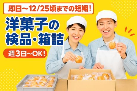 仕事内容 \ 大人気!あの洋菓子ブランドで働こう♪ / 香ばしい焼き菓子の香りに包まれて、楽しくモクモクお仕事しませんか? むずかしい作業は一切なし♪ 未経験の方もすぐに慣れるシンプルワークです! <お仕事内容> ・焼き上がったお菓子の検品(キズ・形チェック) ・個包装や箱詰めなどの軽作業 ・洋菓子の入出荷・ピッキング作業 など ☆ 難しい作業は一切なし! ☆ 覚えることも少ないので、未経験の方も安心してスタートできます♪ ちょっとした短期バイトで“おいしく”稼ぎたい方におすすめ! 【ここがポイント】 ・短期×高時給で効率よく収入UP! ・未経験OK!カンタン軽作業 ・人気洋菓子ブランドでのお仕事 ・男女スタッフ活躍中!学生・主婦(夫)さん歓迎♪ ・日払い・週払い対応でスグ稼げる◎