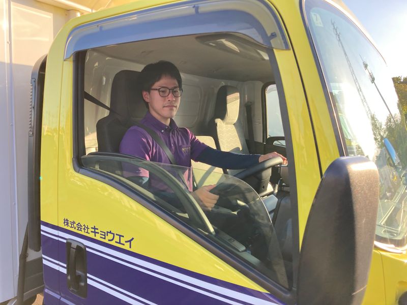 アピールポイント: 「パパとの時間が増えた!」 家族との時間も、収入も、 どちらも大切にできる日勤ルート配送です。 === 仕事後の雑談。 時には腹抱えて笑ったり。 そんな所が好きです笑 === 運転中はひとりの時間。 だからこそ少し寂しくなったり、 ひとりで仕事している感覚になったり。 その方が気が楽だ! というドライバーもいると思いますが、 キョウエイはちょっと違います。 【点呼や帰社してきたときに誰かと必ず話したくなる笑】 マネージャー事務員ドライバー全員、 話し好きな人が多いので コミュニケーションが多い職場です! 新人さんからも 「こんな気さくに声をかけてくれる職場は初めてです!」 と言われることが多いです♪ 仕事をしていると 苦しかったり辛かったりすることもありますが、 こういう職場だからこそ 仲間がモチベーションになっています! (Aさん/入社2年目) 【社内行事がとにかく多い!】 BBQ、カラオケ、ボーリング大会、 忘年会、新年会など… 強制参加ではありませんが、 とにかく社内行事が多いです! これもすべて 「いつも頑張っている従業員を労いたい!」 「楽しいことを一緒に共有したい!」 という会社やマネージャーの考えがあるから。 キョウエイは ひとりひとりをしっかり見てくれるし、 誰かを見捨てるということをしない会社ですね。 (Dさん/入社5年目) ━━ ~物流業界の面白さ、やりがい、教えます~ 物流業界に対して、 どんな印象をお持ちですか? 労働時間が長い、お休みが取れない そんな印象を持っている方も、 少なくはないかもしれません。 ですが実際働いてみると、 良いところもたくさんあるんです。 例えば、 スーパーやコンビニに行くと 欲しいものが手に入るのは、 ドライバーさんたちが 責任を持って商品を運んでいるからです。 ドライバーのお仕事は、 日本経済を縁の下から支えている存在なんです。 キョウエイは 日本の経済を支えている 従業員たちも幸せにするために、 労働時間やお休み、待遇や給与はもちろん、 従業員の家族の幸せも大切にしたい。 物流業界のパイオニアを目指します。 【社員インタビュー】 ●20代 入社2年目 最初は、なにもわからないところからのスタートでした。 皆さんがとにかく丁寧に教えてくださったのと、 楽しそうに仕事をしている姿を見てきたからこそ、 自分もこの会社で楽しく働きたいと思い、入社しました。 ●30代 入社5年目 日々、レベルアップさせて頂ける環境がとても整っているなぁと。 その中の一つが、免許を推薦して取らせて頂けるっていうことで、 自分のレベルアップを一緒にやっていただけるような会社。 そんなイメージがあります♪