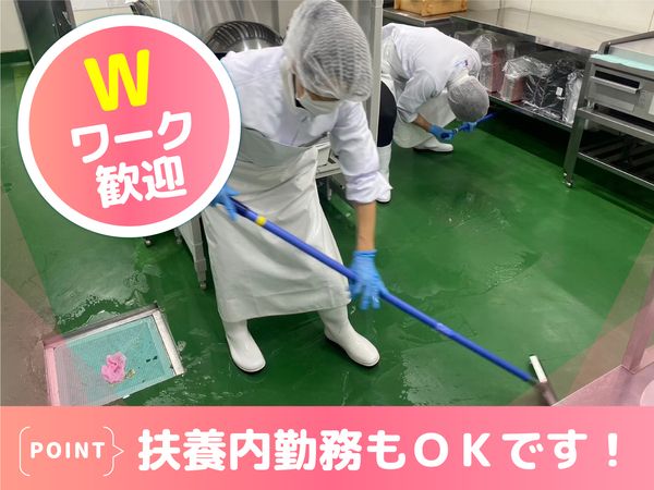 仕事内容 大手食品スーパーのバックルーム内で清掃作業をお任せします。 チェック項目に従って清掃していくダケ♪ *シフトにより以下3つの部門を担当して頂きます。 <惣菜> 寿司ロボットの分解・洗浄 ボールやざるなどの除菌・洗浄 <畜産> スライサーの分解・洗浄 使用後のまな板の除菌・洗浄 <水産> 業務用まな板の洗浄(6~7枚) 鮮魚コーナーの洗浄・床拭き など ◆お任せするのは清掃業務のみ! 調理やカットは行いませんので未経験の方もご安心ください◎ ================ <おすすめポイント> (1)週2日~OK! ┗「土日祝のみ」もOK!勤務日数は気軽に相談できる環境です♪ (2)空調完備で働きやすい◎ ┗夏は涼しく、冬は暖かい、とても働きやすい職場です! 休憩室やロッカー完備など、しっかり完備しています◎ (3)夕方からの勤務で無理なく勤務 ┗18時からのシフトのみなので、朝に弱い方もWワーク希望の方も働きやすいですよ◎ (4)更衣手当て支給 ┗勤務開始前と勤務終了後にそれぞれ更衣手当てを支給します◎ ================