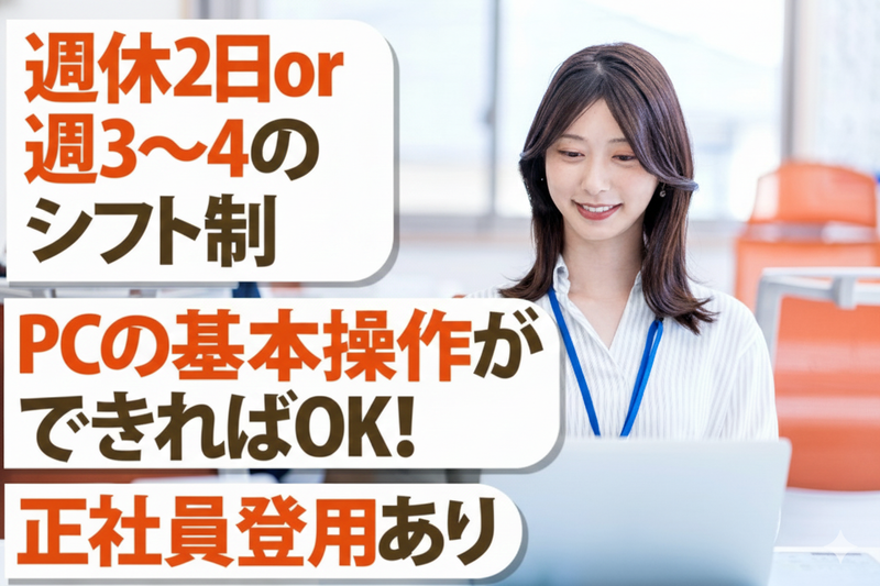求めている人材 ・PCの基本操作ができる方 ・土日出勤できる方歓迎 性別の条件と理由:女性歓迎(ポジティブアクション)