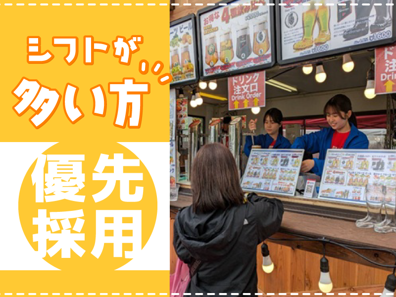 勤務時間詳細 \単発・短期OK!/ 好きなシフトで働けます◎ ●設営日…4/15(水) 10:00~18:00 ●初日営業…4/16(木) 10:00~20:30 ●通常営業…4/24(金)〜5/10(日) 平日14:00~20:00 土日祝10:00~20:00 ●最終営業…5/11(月) 14:00~21:30 ●撤去日…5/12(火) 10:00~18:00 <開催期間> 4/24(金)~5/11(月) ※前後準備・撤収日あり <営業時間> 平 日…15:00~20:00 土日祝…11:00~20:00