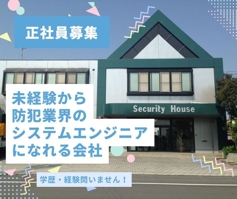 メッセージ ~~~~~~~~~~ ●現在在籍しているスタッフ 「全員」が 未経験・業界素人から スタートしました! ●従業員29名中、 男性18名、女性11人が活躍中! ●男女関係なく活躍できるお仕事です! ~~~~~~~~~~ ●防犯業界に関心がある方は ぜひ一度ご来社いただき 見学してください ●防犯業界や施工調整の知識については 1から親切・丁寧にお教えします ●車通勤可(駐車場あり) ●転勤なし ◆――――――――◆ 株式会社セキュリティハウスは 防犯カメラ・インターフォン・ 入退管理システムの 販売・施工を行っております ◆―――――――ー◆ ▽▽▽▽▽▽▽ ☆こちらのお仕事は、 企業様からお預かりし 転職エージェント『しごと計画学校』が ご紹介するお仕事です ※応募先は『しごと計画学校』となり 雇用先は紹介先の企業様となります 『しごと計画学校』については 下記「その他欄」に記載しておりますので ご参考ください スタッフ全員未経験・業界素人からのスタートでした!基礎から教えます! 職業紹介事業(33-ユ-300208) 労働者派遣事業(派33-300443)