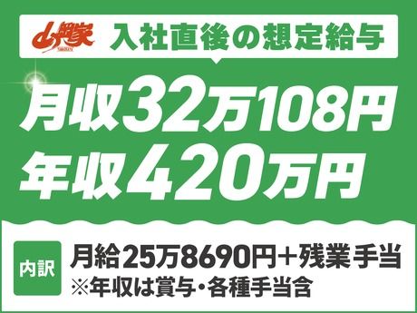 仕事内容 経験を活かしながら、負担を抑えて働きたい方に◎! 【飲食経験者歓迎】※ジャンル不問 深夜でも多くのお客様にご来店いただく山岡家。 飲食店経験や接客スキルを活かしながら、 生活リズムを整えて働きたい方にもオススメ! ★ラーメン屋の経験がなくても大歓迎です! <夜勤専従で高収入!> 入社1年目で、年収例420万円可能!! 【中国・九州・関西・中部エリアでも続々出店中】 2026年4月3日、香川県に「高松中央インター店」が オープン予定!!満を持して、四国初進出です!!! 2025年10月には、 和歌山県2店舗目「岩出店」もオープンしました! / 成長加速&エリア拡大中に伴い、 正社員を“積極採用中”!(2024年実績:180名以上) \ 【スムーズに業務を始めていただくために…】 入社後は、茨城県つくば市にある自社の トレーニングセンターで研修を実施(3泊4日) ※研修中の交通費・宿泊費は全額会社負担! ※研修中もしっかり給与支給で安心スタート ====================== ◆週休3日制の正社員は、転居を伴う転勤なし!◆ \ オススメPOINT 1 / 【22時~出勤、夜勤のみで年間休日156日】  ̄ ̄ ̄ ̄ ̄ ̄ ̄ ̄ ̄ ̄ ̄ ̄ ̄ ̄ ̄ ̄ ̄ ̄ ̄ 働き方改革の一環として導入した、 「週休3日制・夜勤専任」の正社員制度。 転居を伴う転勤がなく、地元でライフスタイルに 合わせた働き方が可能になりました! 住み慣れた場所で長く働きたい方や、 家族との時間をゆったり取りたい方にも◎! \ オススメPOINT 2 / 【東証スタンダード上場企業の安定基盤】  ̄ ̄ ̄ ̄ ̄ ̄ ̄ ̄ ̄ ̄ ̄ ̄ ̄ ̄ ̄ ̄ ̄ ̄ ̄ ■残業代は1分単位で全額支給(みなし残業なし) ■昇給・賞与は年2回!! ■プライベートの都合に考慮したシフト希望休、 有給の取得も可能!(土日・連休の取得もOK) ■男性社員の育休取得実績もあり! \ オススメPOINT 3 / 【週休2日制へのキャリアチェンジも可!】  ̄ ̄ ̄ ̄ ̄ ̄ ̄ ̄ ̄ ̄ ̄ ̄ ̄ ̄ ̄ ̄ ̄ ̄ ̄ まずは週休3日制でプライベートと両立。 「もっと働きたい」「キャリアを積みたい」と 思ったら、週休2日制へ転換もできますよ! 実際に、働き方を変えながら キャリアアップを叶えた社員も在籍しています。 <社員の声|入社3年目・店長・30代> 「家庭と両立できる範囲での異動など、 無理のない働き方に惹かれて週休3日制で入社。 前職と比べて、“サービス残業なし”など働き方が クリアで、福利厚生も充実していて安心でした。 その後、仕事がどんどん面白くなり週休2日制に転換。 社内カリキュラムに沿ってスキルが認定されるたびに 昇格し、今では店長として働いています!」 *店長職の収入例 年収560万円(月給41万円+賞与年2回+各種手当) ====================== 【お仕事について】 まずはホール業務からスタートし、 店舗全体の流れや雰囲気をつかみます。 その後、キッチン業務や洗い物、 仕込みなども担当していただきます。 <将来的には…> 接客・調理だけでなく、 衛生管理・設備管理など、店長不在の 時間帯の店舗運営も含めてお任せをします。 \\ 段階的に学べるので安心! // ◆冊子のマニュアルや、店舗のタブレットでも 視聴できる動画教材などをご用意。 何を・どの順番で覚えればいいかが明確で、 着実にステップアップできます! ◆全店舗、食券制&設備が整った店内。 丁寧な接客と、スープ・ネギ・チャーシュー すべてを「お店で手作り」にこだわる山岡家の スタイルに集中しやすい環境です! ※接客・マニュアル・動画はすべて日本語です。 【丸千代山岡家について】 全国に190店舗以上のラーメン店を運営中。 売上好調!前年比平均10%以上の成長率! 47都道府県への出店を目指し、新店OPENも続々。 セントラルキッチンを設けず 全店直営&店内手作りにこだわる姿勢で、 根強いファンもたくさんいます! リピート率はなんと75%超え!(自社調べ) <売上高> 186億7600万円(2023年1月期) 264億9400万円(2024年1月期) 345億8500万円(2025年1月期)*前年比130.5%! 《HP》https://www.yamaokaya.com/ 《採用HP》https://recruit.yamaokaya.com/