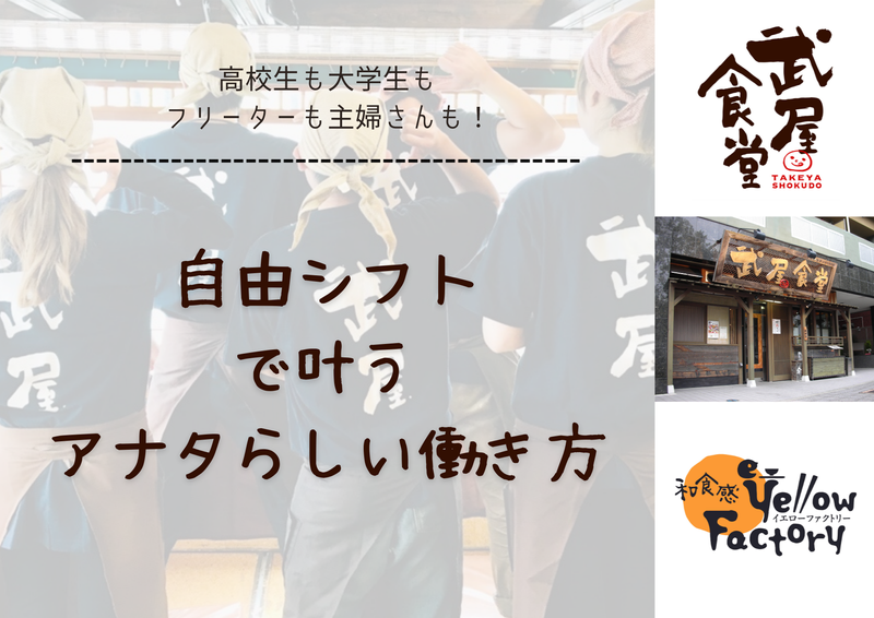 仕事内容 ╭━━━━━━━━━━━━╮ 【荒井駅チカ⭐武屋食堂 ╰━v━━━━━━━━━━╯ 夕方時間のスタッフ募集! 高校生も大学生も活躍しています! 「料理はあまりしたことがない…」 「バイトするなら裏方がいいな…」 そんなあなたにぴったり!! まるで家族のような温かい雰囲気の職場で、新しい仲間を募集中! ╭━━━━━━━━━━━━╮ この求人のポイント⭐ ╰━v━━━━━━━━━━╯ ✅高校生・大学生OK ✅接客ほぼナシ! ✅料理が得意になるかも! ✅週2,3日~OK ✅学生・フリーター活躍中 ⭐スタッフの声:10代:高校生  ̄ ̄ ̄ ̄ ̄ ̄ ̄ ̄ ̄ ̄ ̄ ̄ ̄ ̄ ̄ ̄ ̄ ̄ ̄ 「料理に興味があったのでキッチンで応募し働いています。レシピがあるのでコツさえつかめば◎家で家族にも作ってみたのですがとっても喜んでくれてうれしかったです!」 ⭐仕事内容  ̄ ̄ ̄ ̄ ̄ ̄ ̄ ̄ ̄ ̄ ̄ ̄ ̄ ̄ ̄ ̄ ̄ ̄ ̄ ・未経験OK! 難しい調理はナシ! ・レシピに沿ったメニューの調理 ・最初は盛り付けなどからスタート! ⭐シフトは超自由!学校との両立も◎  ̄ ̄ ̄ ̄ ̄ ̄ ̄ ̄ ̄ ̄ ̄ ̄ ̄ ̄ ̄ ̄ ̄ ̄ ̄- 「今週はテストがあるから」 「もっとシフトインしたい」などもOK! あなたの都合に合わせて働けるから、プライベートや学業との両立もバッチリ! ・週2日、1日4時間からOK! ・休み希望は99%通ります! ⭐武屋食堂で働く魅力  ̄ ̄ ̄ ̄ ̄ ̄ ̄ ̄ ̄ ̄ ̄ ̄ ̄ ̄ ̄ ̄ ̄ ̄ ̄ ”働きやすさを第一に考えています!” 1:シフトの自由度が高い! ・週2日、1日4時間からOK! ・休みの希望が99%通ります! 2:幅広い年齢層が活躍中! ・高校生、大学生、主婦、シニアまで、さまざまな世代のスタッフが働いています! 3:自然体で働ける環境! 一人ひとりの働き方を尊重しているので、無理なく長く続けられます。 ・当社採用ページもご覧ください! https://arwrk.net/recruit/takeya-yellow