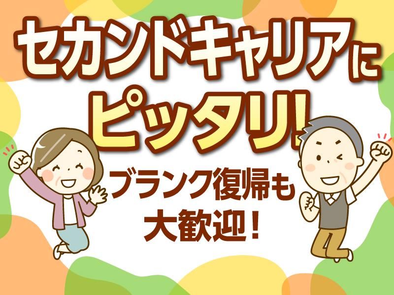 職場環境 <地元スタッフも活躍中!> 30代・40代50代・60代、 中高年・シニア層まで 幅広い年代が活躍しています。 「ブランク復帰」 「単発や短期、派遣等から 安定勤務に切り替えたい」 等という方も応援します!
