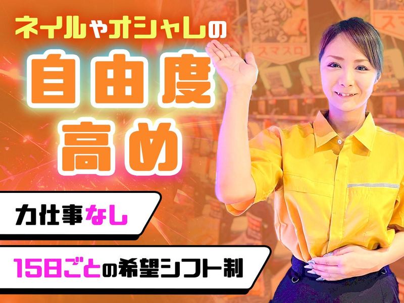 仕事内容 ✨未経験スタート多数活躍中✨ \\『楽しく働きたい!』ならココ♪//  ̄ ̄V ̄ ̄ ̄ ̄ ̄ ̄ ̄ ̄ ̄ ̄ ̄ ̄ ̄ ̄ ̄ ̄ ̄ ⭐オススメPOINT⭐ *パチンコしたことなくてもOK! *空調完備だから夏も涼しく快適 *玉運びナシでラクラク! *すぐ馴染めるフレンドリーな職場! *接客力が身につく! ─────【お仕事内容】───── 【ホール】 ・パチンコ・スロット台の清掃 ・ドル箱の交換 ・お使いサービス ・その他業務 【カウンター】 ・お客様の案内 ・レジ対応 ・景品の交換や在庫確認 +:..。o○☆・:,。+:..。o○☆+:・:,。+ ⭐働くスタッフの声⭐ ◆30代男性 フリーターさん 「慣れたら簡単な作業がメインで しかも他の接客業と違い、 お客様と対面で話すことも あまりないので楽です◎」 ◆20代女性 主婦さん 「お店は完全禁煙で、常連さんも ゴミを持って帰ったり お店の備品もキレイに片づけたり してくれるのでパチンコ店の イメージが覆されました!」 ◆20代男性 大学生さん 「3回生になって学業・サークル・ インターンと忙しくなってきましたが シフトの希望も快く受け入れて くれるので助かっています!」 +:..。o○☆・:,。+:..。o○☆+:・:,。+:..