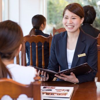 仕事内容 会場案内からプランニング、当日の進行まで一貫して担当。お客様との対話が多い、やりがいあるお仕事です。 ご来館のお客様に会場を案内後、要望をくみ取りながらプランを提案。当日は滞りなく式が進行するよう動き回ります。チームで一丸となって、陰ながら式を支えているんです。 憧れのウエディングのお仕事に挑戦。あなたのやる気を評価します。人との繋がりを大切にできる方大歓迎! 人と関わることが好きな方には、大きなやりがいを感じてもらえるはずです。高卒以上であれば他に知識は必要なし。未経験の方もチームの中で少しずつ力を付けられますよ。 アットホームで相談しやすい環境が自慢。仕事のこともそれ以外も、一人で悩む前に相談してくださいね。 年齢や性別はバラバラですが、お客様への想いは同じ。一緒の目標に向かって頑張る仲間が大勢います。スタッフ間の雰囲気がいいから、お客様も心を開いてくれるんです。 きちんと仕事に向き合って欲しいから待遇は厚く!昇給・賞与有で、腰を据えてじっくり働いていただけます。 交通費支給、車・バイク通勤もOKで遠くにお住まいでも大丈夫。制服支給なのでフォーマルなお洋服を改めて準備する必要もありません。昇給・賞与で頑張りを評価します! オーダーメイドの思い出作りを目指して。1964年の創業以来、時代の流れと共に変化を続ける会社です。 ブライダル事業やフォトスタジオ事業を通じ、「振り返りたくなる一日」を人々に提供してきた当社。マニュアル通りの対応よりも、社員一人一人の個性を重視しています。