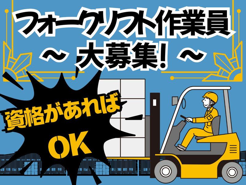 求めている人材 【必須】 ★通勤手段をご自身で確保できる方 ┗車通勤可能です◎ ★フォークリフト免許必須 ┗経験者年数問わず大歓迎!!! ◆ブランク歓迎 ◆経験者歓迎 ◆学生歓迎 ◆フリーター歓迎 ◆主婦・主夫歓迎 ◆Wワーク歓迎 ◆学歴不問