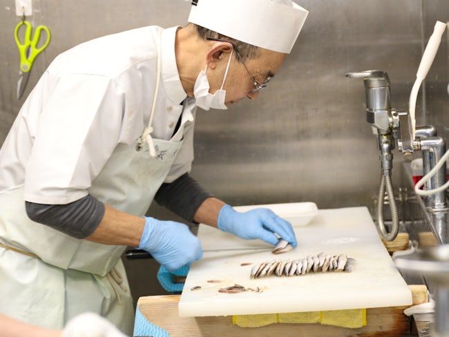回転寿司店の魚の仕込みスタッフ