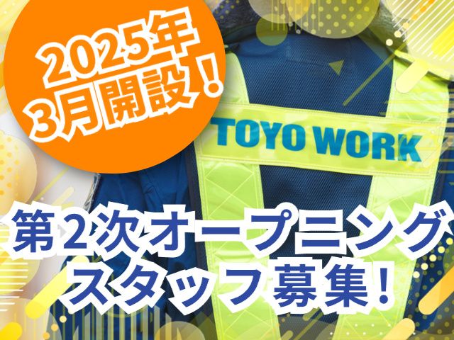 仕事内容 2025年3月開設! 第2次オープニングスタッフ募集! 急ぎ募集です! 「いまだけ!入社した方限定」 「オープニング手当支給」 入社から30勤務まで1勤務1,500円支給! <東洋ワークセキュリティで働くメリット> ・社員総数3,000人の人的資源力 ・技術とサービス品質の向上力 ・全国47拠点による展開力 ・有給休暇取得の平均日数9.7日 ・警備未経験の応募OK!仕事・業界のことを一からしっかり学べる ・平均勤続年数4.75年 ・資格取得支援制度あり(費用会社負担) <交通誘導スタッフのお仕事内容> 電気通信の工事現場にて、高所作業車の前後などで車両や歩行者を誘導・案内するお仕事です。 工事期間が終了しても他の現場が多数あり、ご案内できます! ・駐車場での安全確保 ・工事現場での保安・安全誘導 ・ビル建築工事でのゲート管理 ・道路工事での片側交互通行・通行止め誘導 ・高所作業・クレーン作業周辺での歩行者誘導 ・長期休工期間の巡回警備 ・店舗新規オープン時の駐車場誘導 ・ショッピングモール・コンサートホールなど大型駐車場での車両誘導 ・シャトルバス誘導 ・博物館・美術館の特別展での臨時駐車場誘導 ・ショッピングカートの回収・整頓 など 交通誘導のお仕事は通行人や車両などの安全を守るために社会貢献度が高い仕事になります。若い世代から高齢者でも働ける現場多く、定年後の働き口としても人気の仕事です。 <警備経験ない方もOK> 未経験の方には警備の仕事のことをしっかり覚えてもらうための研修期間を設けています。 若い方から中高年の方まで幅広い世代いつからでも警備の仕事をスタートすることが可能です。 現場では複数名での勤務になりますので、常に誰かがサポートしてくれる環境です。 <働きながら資格が取れます> 働きながら仕事に関わる様々な資格を取得することが可能です。 (資格取得にかかる費用は全額会社負担) 資格を取得すると資格手当の付与、さらに警備の仕事の幅が広がります。 <長期安定で働ける環境> ・新卒 ・第二新卒 ・ミドル、シニア(中高年世代) など幅広い年代のスタッフが在籍しています。 警備は仕事の幅が広く、長期的に活躍できるお仕事です。 隊員の中には女性隊員も活躍しています。 その理由は ・力仕事などの重労働もないから! ・暑い日や寒い日でもスタッフが働きやすいように会社がドリンクや飴など気を使ってくれるから! ・シフトの休みも融通がある程度効くから! など女性でも働きやすい環境を当社は整えております。 <当社からのメッセージ> 東洋ワークセキュリティは、社会の安心・安全を支える警備会社としてプロフェッショナルにふさわしいサービス提供を目指し、現在も成長を続けている会社です。 そのサービス提供を支えている“人財”を育成するため、未経験者でも安心して働くことができるような環境整備を進めています。 このため、応募は経験者・未経験者、性別年齢問わず、60歳以上の方、パート・アルバイトの経験しかない方でもOKです! 警備業界のことは全然わからない…という方でも、ぜひお気軽にご連絡ください。 パート・アルバイトからの転職もOK! 警備業界に興味がある方お待ちしてます!