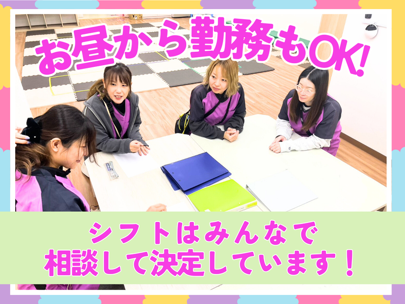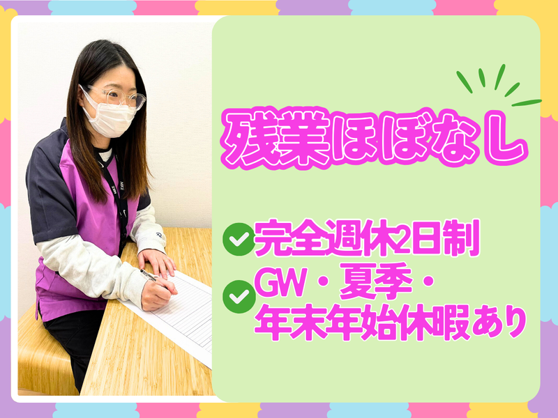 職場環境 <✨残業ほぼなし✨> 子どもたちの成長を 支援している施設です。 残業はほぼなく、終業後は スグに退勤できるので、 お子様のお迎えなども安心!
