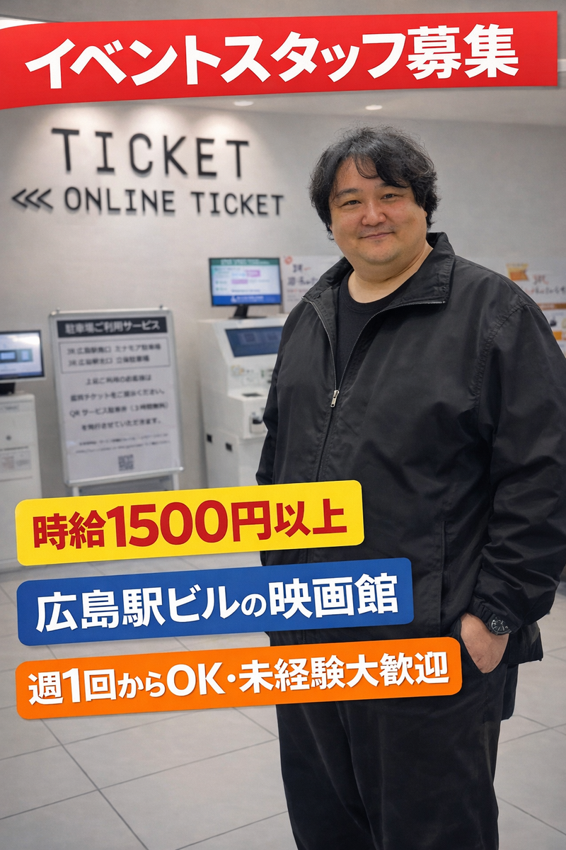 勤務地: 映画館内のイベントスペース 館内喫煙所、フードコート有