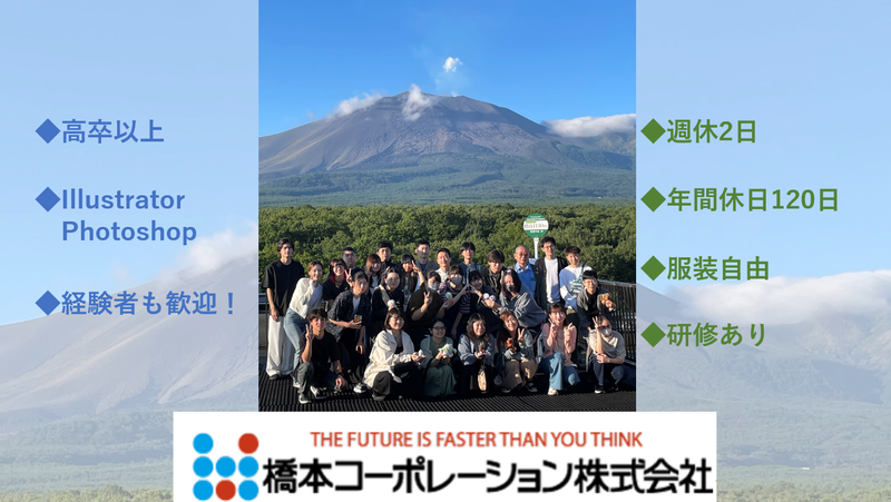 【保険制度】 雇用保険、労災保険、健康保険、厚生年金 待遇・福利厚生 【福利厚生】 ◎昇給 年1回 1月一人当たり平均2万4170円(前年度実績) ◎賞与 年2回 計4.54ヶ月分(前年度実績) ★半期の粗利益額に連動する ※A評価の場合 【福利厚生】 ・福利厚生アウトソーシング最大手「ベネフィットワン」契約 ・AIG損害保険(グループ損害保険)加入 ・研修制度あり(資格取得も可) ・退職金制度 ・バイク通勤可 ・転勤なし ●今年より教育改革も始動! 入社後のスキルアップを全面サポートしております。 ルーティーンワークでは得られない知識を外部講座で学ぶことができます。 学びを続け、活躍の場を広げたいという意欲のある方を応援します。 講座で得た知識はすぐに実務で活かすことができるので、 日々成長を感じることのできる環境です。 スキルアップタイムではWebデザイン学習の講座を受講できます。 出勤日の17:30~19:30はオフィスの一画を開放しておりますので、 会社にいながら勉強時間に充てられます。 自宅での学習も可能です。